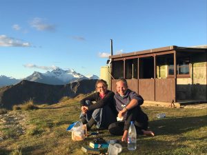 Nachmittags an der Hütte angekommen trafen wir durch Zufall eine sehr nette Österreicherin wieder, die uns schon auf dem Great Walk begegnet war. Nach zwei in der Sonne verquatschten Stunden, wollten wir schließlich unser Zelt neben der Hütte aufbauen… Schon zu diesem Zeitpunkt eine äußerst windige Angelegenheit. Als abends auch noch immer dunklere Wolken aufzogen, haben wir kurzerhand wieder abgebaut und unser Nachtlager auf den Hüttenboden verlegt.